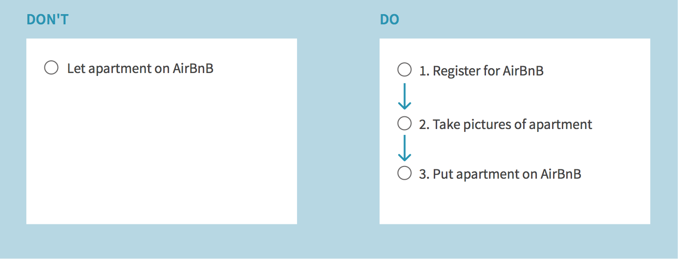 A common mistake is to create to-do lists that are a mere listing of stuff, things or goals, that will still need further thinking and